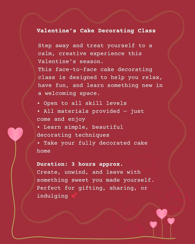 Come solo or with someone special and leave with a cake made by you. Spots are limited.