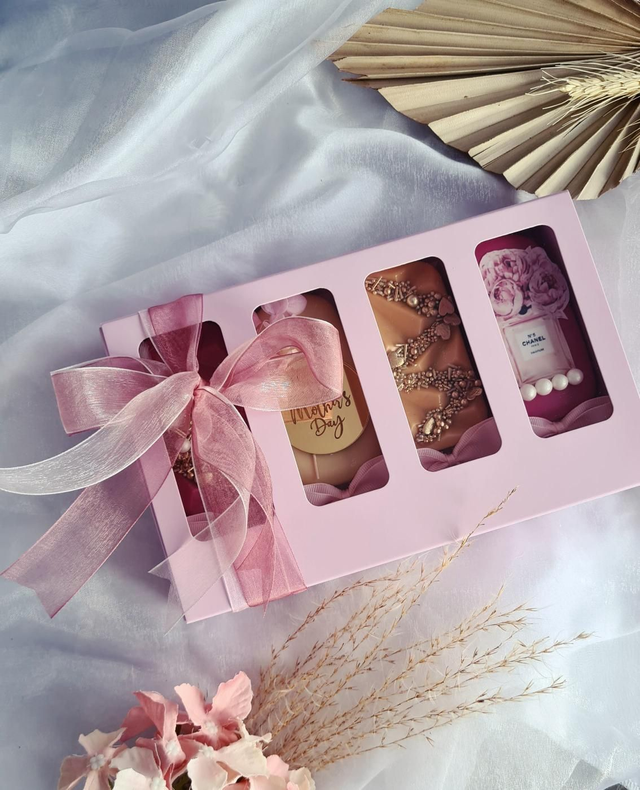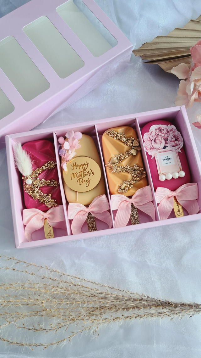 A set of 4 cakesicles designed as per theme: Mother's day.