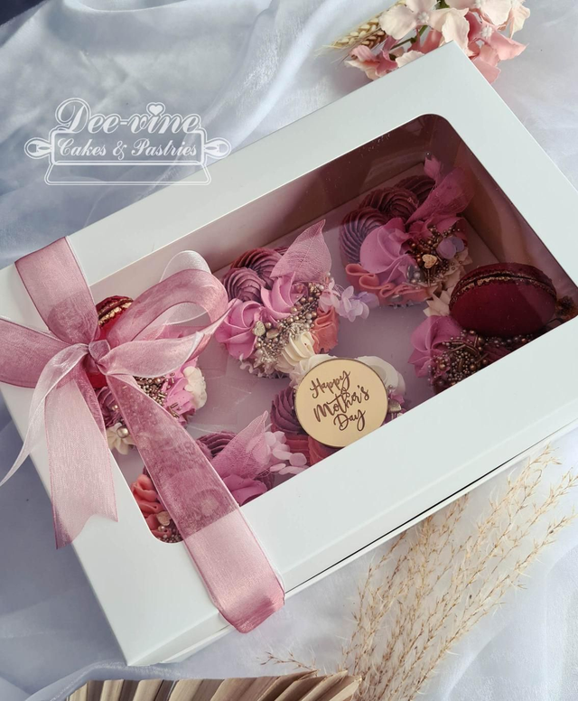 A set of 6 mother's day theme cupcakes.